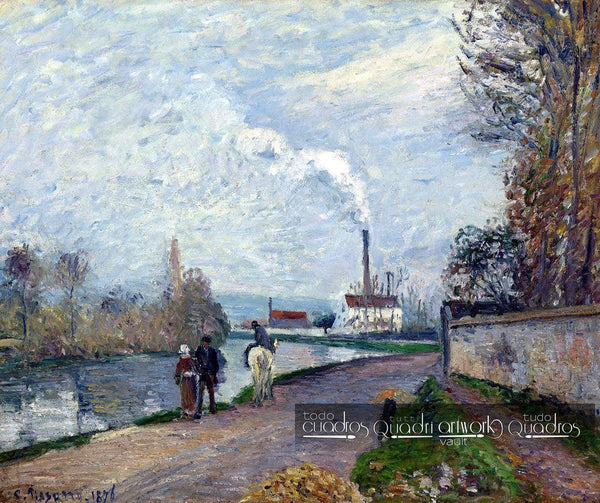 Originaltitel auf Französisch: L'Oise à Pontoise, graues Wetter, gemalt in 1876 von Camille Pissarro.