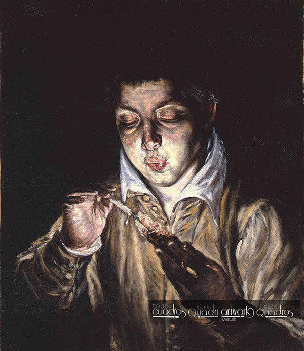 Ein manieristisches Werk, in dem man die Größe des Künstlers als Porträtist erkennen kann. Außerdem zeigt es eine vollständige Beherrschung der Beleuchtung und des Lichteinfalls auf das Gesicht. Das Motiv des Bildes ist rätselhaft: ein Junge, der in einem dunklen und scheinbar kalten Raum eine Flamme entzündet. Die Herkunft der Idee ist unklar, aber der Künstler wiederholte sie mehrmals in seiner Karriere.